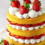 - Assemble the Cake: Place the first cake layer on a serving plate. Spread or pipe a generous layer of whipped cream over it, then add half of the macerated strawberries atop the cream. Repeat with the second cake layer, whipped cream, and remaining strawberries. Finish with the final cake layer and decorate with whipped cream swirls and fresh strawberries. Optionally, drizzle leftover strawberry juices over the top or serve alongside.