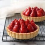 I keep leftover strawberry tart tightly covered in the fridge for up to 3 days. The glaze helps keep the strawberries looking fresh, but the crust may soften a little with time — still delicious, just a different texture.