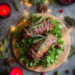 This Christmas Stuffed Flank Steak features a juicy and tender butterflied flank steak filled with a flavorful roasted red pepper and walnut stuffing infused with fresh herbs and Parmesan. Seared to perfection and oven-roasted, it’s a festive and elegant main dish perfect for holiday celebrations.
