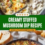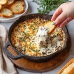 This Stuffed Mushroom Dip offers a creamy, savory blend of baby bella mushrooms sautéed with garlic and thyme, combined with cream cheese, Greek yogurt, and parmesan cheese, then baked to bubbly perfection. Perfect for serving warm with toasted baguette, crackers, or fresh veggies, this dip is a delightful appetizer or party snack with rich umami flavors and a crispy golden top.