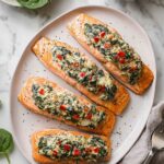 - Fresh, Flavorful Filling: The combination of spinach, roasted red peppers, and tangy feta creates a delicious, light stuffing that complements the salmon perfectly.