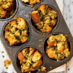 Delicious and easy-to-make Stuffing Muffins featuring whole wheat French bread, savory pancetta, fresh herbs, and classic seasonings. Perfectly portioned in a muffin tin, these stuffing muffins offer a flavorful twist on traditional stuffing, ideal as a side dish for holiday meals or everyday dinners.