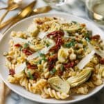 This vibrant Sun-Dried Tomato Pasta Salad with Artichoke Hearts is a flavorful, satisfying dish perfect as a summer side or a vegetarian main course. Featuring tender pasta tossed with a zesty sun-dried tomato vinaigrette, tangy artichoke hearts, capers, fresh herbs, and crunchy toasted pine nuts, this recipe balances rich Mediterranean flavors with refreshing brightness.