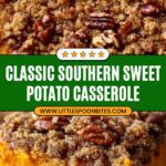 This Southern Sweet Potato Casserole is a creamy, comforting holiday side dish featuring mashed sweet potatoes sweetened with sugar and vanilla, topped with a crunchy pecan and brown sugar crumb topping. Perfectly balanced between smooth and crunchy textures, it’s a classic Southern recipe that’s easy to prepare and sure to impress at any family gathering or festive occasion.