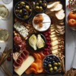 This Thanksgiving Cheese Board is the ultimate appetizer featuring a delightful assortment of olives, cured meats, nuts, cheeses, dried fruits, and accompaniments. Perfect for sharing, it requires no cooking and can be quickly assembled to impress guests with a variety of flavors and textures.