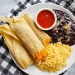 Pair these tamales with a vibrant corn salsa or Mexican street corn salad. A simple avocado and tomato salad on the side complements the richness. For a heartier meal, black beans and rice never disappoint.