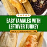 These Thanksgiving Tamales are a comforting and festive dish perfect for using leftover turkey. Made with a soft masa dough seasoned with taco spices and filled with flavorful shredded turkey, wrapped in corn husks and steamed to perfection. A delicious and traditional way to celebrate the holiday flavors in a handmade tamale.