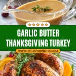 - Rest and Serve: Let the turkey rest for at least 15-20 minutes before carving to allow the juices to redistribute. Serve slices of turkey with the homemade garlic butter pan gravy for a flavorful and moist Thanksgiving centerpiece.