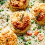 - Bake: Place the assembled pot pie in the preheated oven and bake for 25-30 minutes or until the biscuit topping is golden brown and cooked through, and the filling is bubbling.