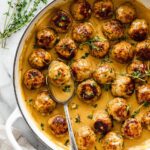 Delicious and savory Turkey Meatballs served with a rich and creamy Maple Mustard Sauce. These meatballs are pan-seared to perfection and then simmered in a flavorful sauce made with Dijon mustard, maple syrup, and mayonnaise. A comforting fall dinner that combines wholesome ingredients and fresh herbs for a perfect balance of taste and nutrition.
