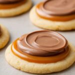 - Assemble Caramel Cups: Spoon a few teaspoons of the caramel onto each cooled cookie, spreading until nearly covered. Chill the cookie cups in the fridge for 10-15 minutes until caramel is firm and cold.