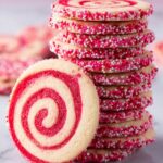 These Valentine’s Day Swirl Cookies are a festive and delightful treat featuring a beautiful swirl of colored and vanilla dough, rolled up with holiday sprinkles for a crunchy, colorful finish. Perfect for the holiday or any special occasion, these buttery cookies combine subtle vanilla flavor and vibrant hues in a fun and unique design.