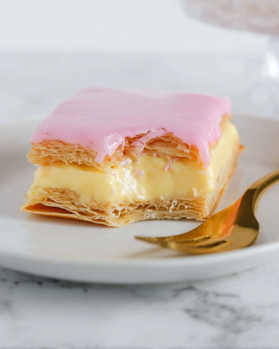 This Vanilla Custard Slice with Pink Icing Recipe holds a special place in my heart. It’s one of those classic desserts that brings back nostalgia and feels like a warm hug in slice form. I love sharing this with friends because it never fails to impress without any complicated steps. Give it a try — you’ll enjoy every creamy, flaky, pink-glazed bite just as much as I do!