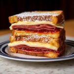 Once cooked, dust your sandwich with powdered sugar, slice into triangles or quarters, and serve with a generous spoonful of raspberry preserves for dipping. This combo is what makes the Monte Cristo feel so indulgent and balanced—I promise, you’ll want to dunk every bite.